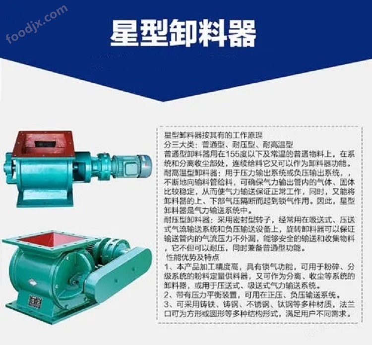 星型卸料器 輸送設(shè)備是除塵設(shè)備排灰、送風(fēng)及其他設(shè)備給料的主要設(shè)備,適用于粉狀物料和顆料狀物料。分類(lèi):卸料器主要分為A型方口卸料器,B型圓口卸料器。