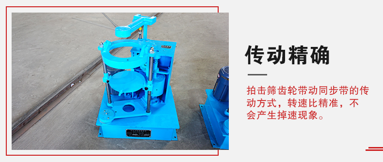 拍擊篩齒輪帶動同步帶的傳動方式,轉速比精準,不會產生掉速現(xiàn)象。