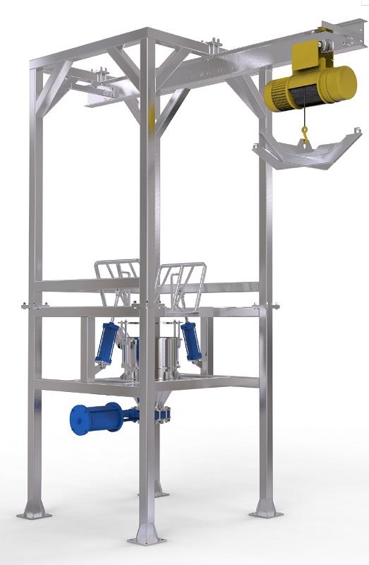 無塵投料站由人工傾卸箱,反壓供料平臺,格柵,下層沙坑,振動器,過濾系統(tǒng),除塵系統(tǒng),回吹氣囊等組成。