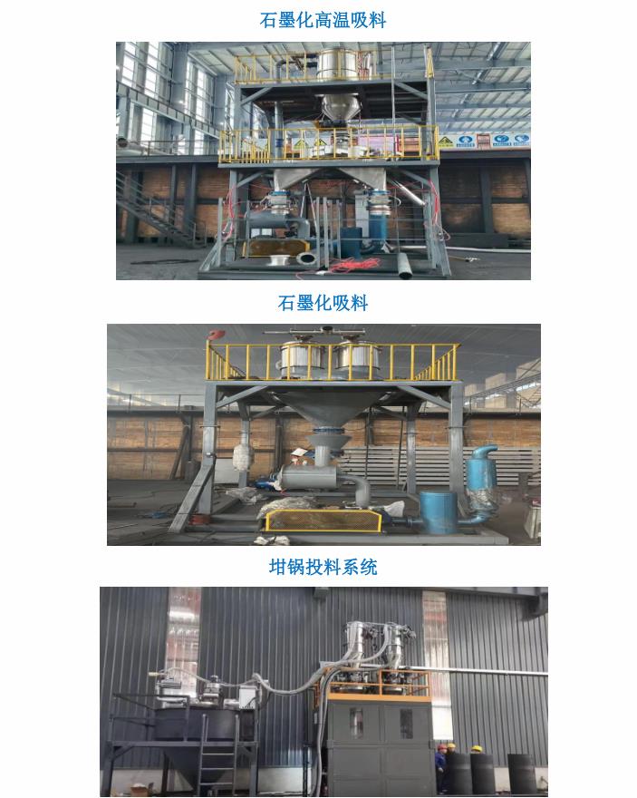 公司針對新能源、新材料、石墨化預碳化、鋰電負極行業(yè)等設計的生產(chǎn)線,大功率真空吸料機,輸送距離最達遠可達170米,260°高溫料經(jīng)過冷卻系統(tǒng)可直接裝進噸包。(石墨化坩堝投料設備,坩堝壓實設備,艾奇遜爐投料設備,石墨化吸料小車,石墨化投料小車,石墨化高溫吸料系統(tǒng))