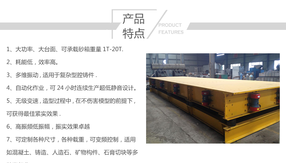 ◆大功率、大臺(tái)面;大功率7.5kw,激振力80KN,可承載10T。
