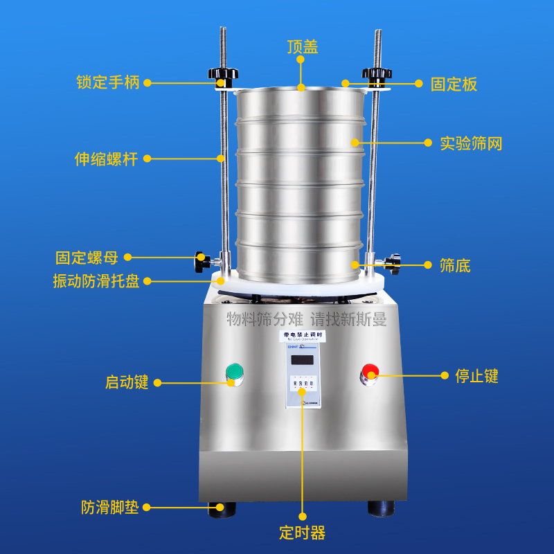 1、標(biāo)準(zhǔn)試驗(yàn)篩(主機(jī))-YJS-200試驗(yàn)篩是一種可定時(shí)自動(dòng)關(guān)機(jī),保證試驗(yàn)重復(fù)性,功能全面操作簡(jiǎn)單的粒度分析儀器,可將一種顆粒料同時(shí)精密分出2-8個(gè)粒子段,可用于漿液料的細(xì)度及雜物含量分析。