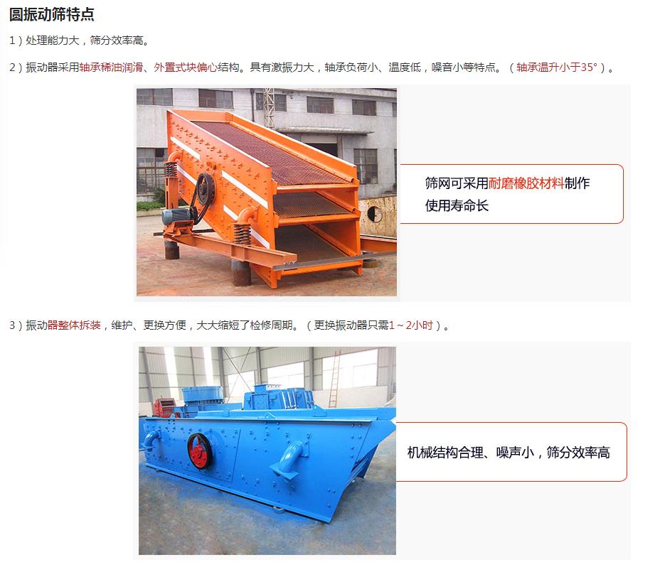 1、圓振動篩篩機(jī)分單層和雙層,并有輕型和重型之分。